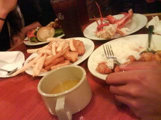 Day before Christmas party was a day out with some of my relatives to the Camarillo Outlet [a 45 minute place from LA] for last minute shopping. My favorite cousin and I spent 3 hours there and ended up not buying anything. That's just lame...but we spotted two people we both recognized. It's weird because both my cousin and I somehow know them through different connections and we met them at a place that I rarely see anyone I know from my city. To make sure, I called one of them and see if it was them or not and it was. So we had a mini chat and went our separate ways, until we spotted them at the same store my cousin and I were in. Such stalkers...:P Later at night, we ate out at City Buffet and talked about random things, including graduation. We might have a triple graduation party since my favorite and another cousin are graduating on the same month but different dates.